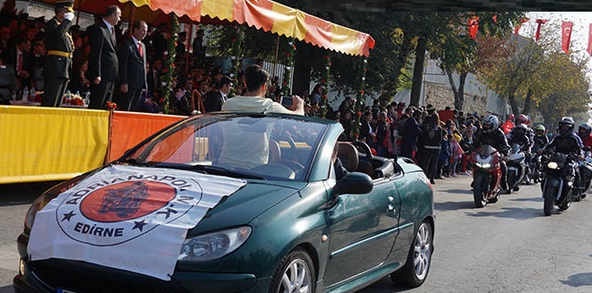 İYİ Parti Edirne İl Başkanı Ekrem Demir, 29 Ekim Cumhuriyet Bayramı kutlamalarında düzenlenen geçit töreninde bir motor kulübünün taşıdığı pankartın üzerinde “Adrianapoli” yazılı olmasını eleştirdi.