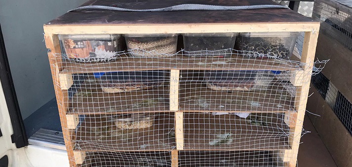 Ekipler kamyonette Türkiye'ye kaçak olarak getirildiği tespit edilen 21 piton, 43 mandarin ördeği ve 4 sakarca kazı ele geçirdi.