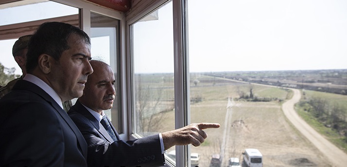 Aktaş, sığınmacıların beklediği tampon bölge hakkında bilgi aldıktan sonra, karakolun kulesine çıkarak sınır hattını dürbünle inceledi.