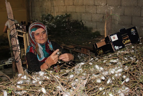 Demirhanlı köyünde atıl vaziyette bulunan evlerini, Bursa Kozabirlik Genel Müdürlüğünden aldıkları destek ile dezenfekte edip ipek Böceği üretebilecek hale getiren Türker ve Göçmen dört paket böcekle başladıkları üretimi başarıyla tamamladılar.