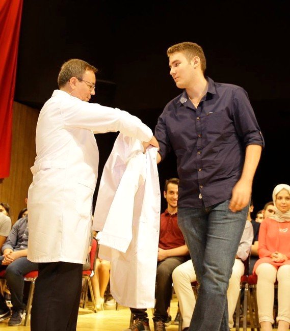 Tabakoğlu, fakülteye birinci sıradan giren Berk Candaş ile Söylem Toksöz'ün beyaz önlüklerini giydirdi.