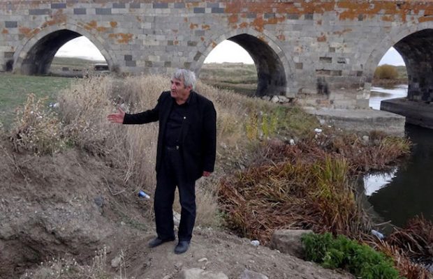Erzurum’da Fırat’ın kolu Karasu üzerine 3. Murat’ın 1635’deki Revan seferine giderken yaptırdığı Karaz Köprüsü, defineciler tarafından parça parça koparılıyor.