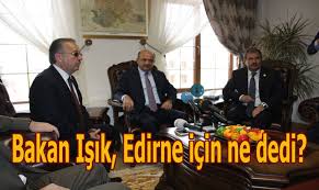 Edirne’ye bir dizi temaslarda bulunmak üzere gelen Milli Savunma Bakanı Fikri Işık, Edirne ile ilgili çok önemli bir saplama yaptı. Edirne Valiliğinde, Vali Günay Özdemir, Belediye Başkanı Recep Gürkan, Milletvekili Rafet Sezen ile birlikte bürokratlar tarafından karşılandı. Karşılamadan sonra Valilik şeref defterini imzalayan Bakan Işık, daha sonra makamda basının sorularını cevapladı.