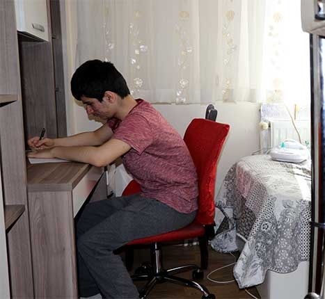 Edirne'de, akciğer rahatsızlığı olan Mehmet Ruşen Erkurt Ortaokulu 8'inci sınıf öğrencisi Furkan Bitik, Ortaöğretim Kurumları Merkezi Sınavına evinde girdi.