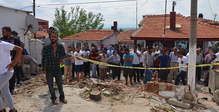 Tekirdağ'ın Malkara ilçesinde bir evin bahçesinde resmi izinle altın aranıyor.