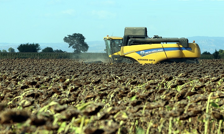 Yaklaşık bir ay önceki renk tonlarını kaybeden ve şekil itibarıyla güneşe doğru bakan günebakanlar, hasat zamanında solmuş rengi ve toprağa eğilmiş başlarıyla biçilmeye hazır.
