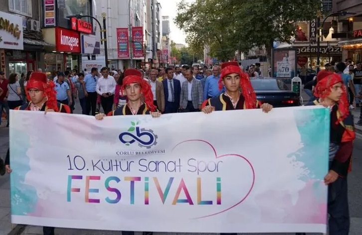 Çorlu Belediyesi 10. Kültür, Sanat ve Spor Festivali, festival açılış korteji ile start aldı. Sanata, müziğe, spora dair pek çok farklı etkinliğin yer alacağı, Çorlu için gelenekselleşmiş festival, Anadolu’nun farklı yörelerine ait birbirinden farklı Türk el sanatları örneklerinin yer aldığı Geleneksel El Sanatları Çarşısı’nın açılış töreni ile başladı. Çorlu Belediyesi hizmet binası arkasında yer alan otopark alanında kurulan Geleneksel El Sanatları açılış törenine Çorlu Kaymakamı Cafer Sarılı, Tekirdağ Milletvekili İlhami Özcan Aygun, Çorlu Belediye Başkanı Ahmet Sarıkurt, Bulgaristan Edirne Konsolosu Radoslava Kafedjiyska, Bosna Hersek Cumhuriyeti 1. Genelkurmay Başkanı Sefer Haliloviç, Rumeli Balkan Türk Dernekleri Federasyonu Genel Başkan Yardımcısı Refik Akova, Çorlu Belediye Başkan yardımcıları, belediye meclis üyeleri, siyasi parti temsilcileri, sivil toplum kuruluşu üyeleri, halk dansları ekipleri ve çok sayıda vatandaş katıldı.